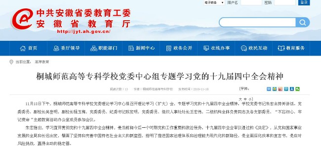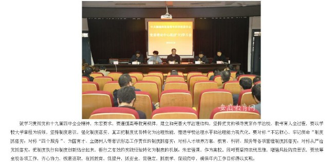 安徽教育網:《桐城師範高等專科學校黨委中心組專題學習黨的十九屆四中全會精神》