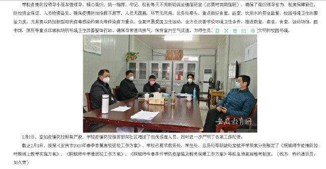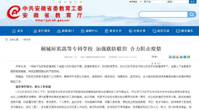安徽教育網:《桐城師範高等專科學校 加強聯防聯控 合力阻擊疫情》