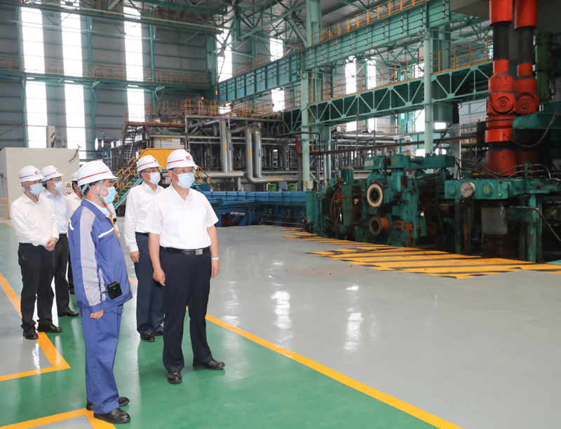 馬鞍山市因鋼而設、因鋼而興。習近平來到中國寶武馬鋼集團,了解企業生產經營情況,察看重點產品展示。隨後,習近平走進優質合金棒材車間,察看加熱爐、初軋機、中軋機等運行情況。車間外,企業勞動模範、工人代表看到總書記來了,熱烈鼓掌。習近平親切地同大家打招呼。他指出,疫情發生以來,馬鋼克服困難,率先複工複產,上半年產量和營收同比實現“雙升”。要抓住深化國有企業改革和推動長三角一體化發展的重大機遇,加強新材料新技術研發,開發生產更多技術含量高、附加值高的新產品,增強市場競爭力。勞動模範是共和國的功臣,要大力弘揚勞模精神。