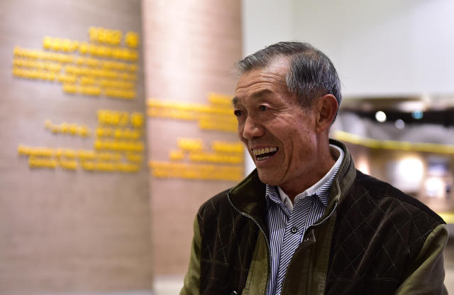 鳳陽縣小崗村村民嚴金昌在大包幹紀念館內(4月26日攝)。新華社記者劉軍喜攝