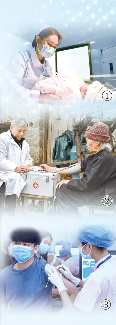 圖②:醫生為村裏老人定期體檢。