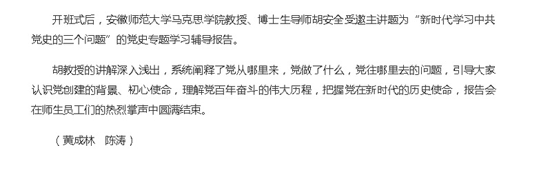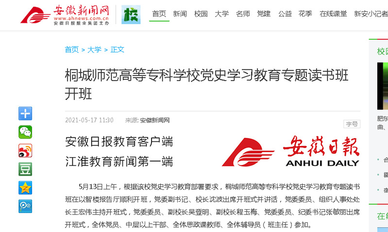 安徽新聞網:《桐城師範高等專科學校黨史學習教育專題讀書班開班》