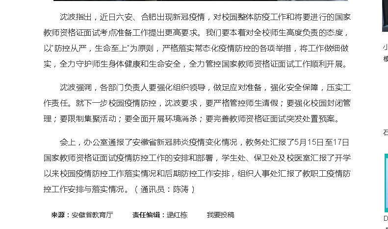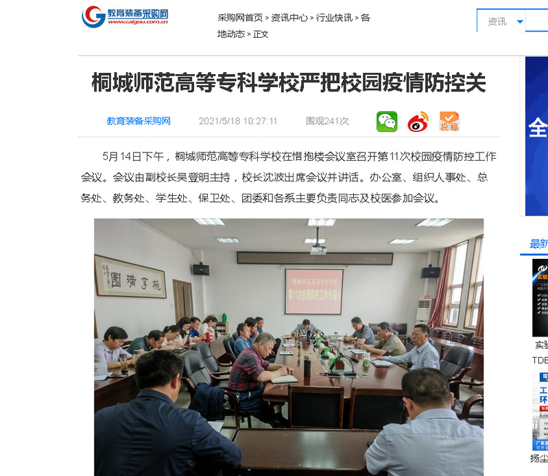 教育裝備采購網:《桐城師範高等專科學校嚴把校園疫情防控關》
