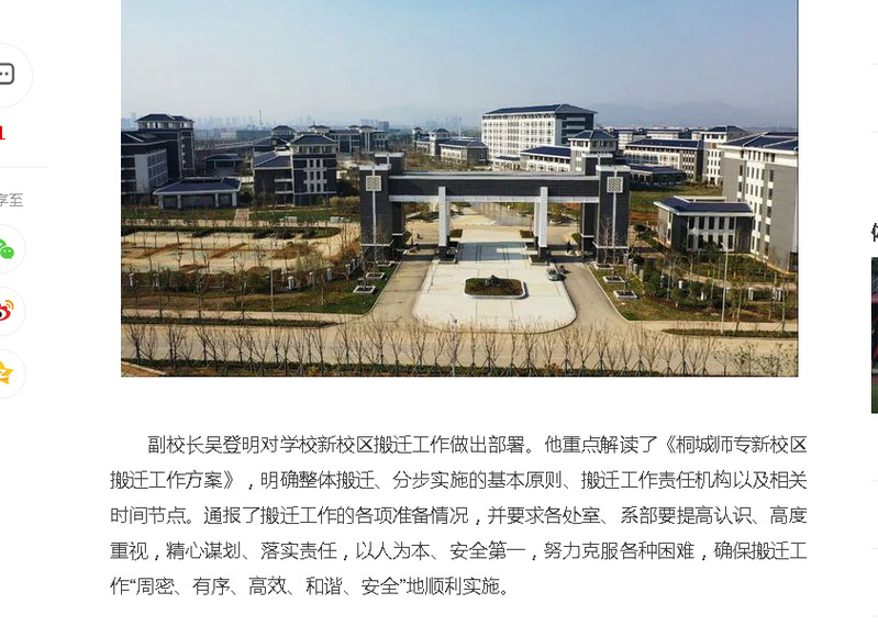 桐城網:《吹響新校區搬遷衝鋒號——桐城師範高等專科學校召開新校區搬遷動員大會》