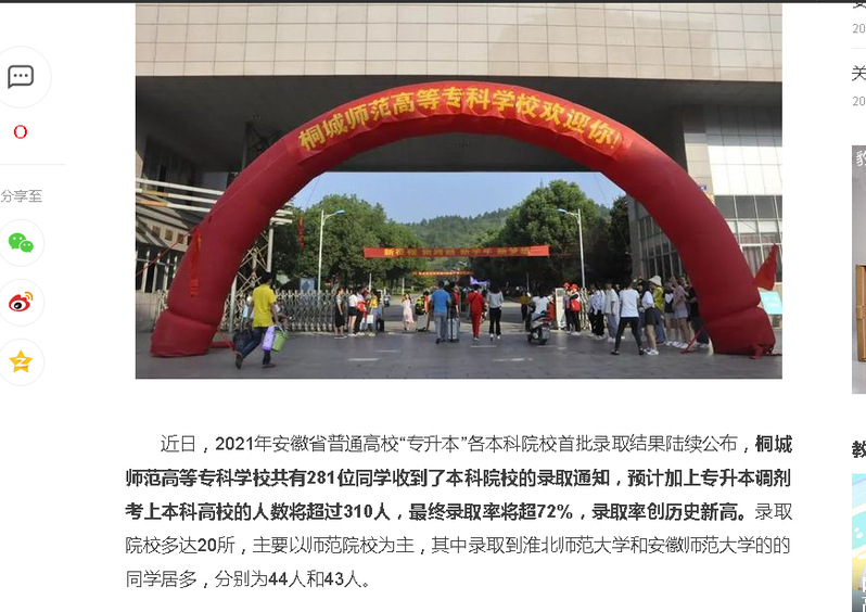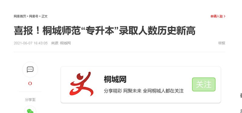 網易網:《喜報!桐城師範“專升本”錄取人數曆史新高》