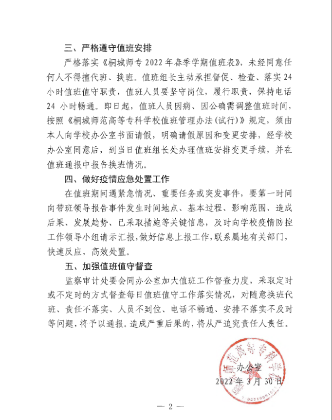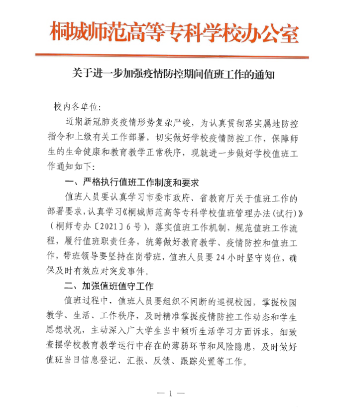 關於進一步加強疫情防控期間值班工作的通知