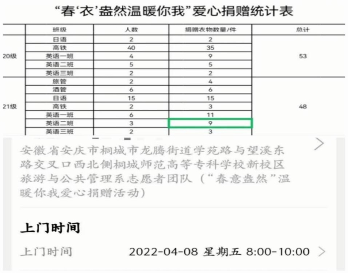 為了幫助貧困山區物資匱乏的孩子們,培養在校青年大學生資源回收利用的環保觀念,進一步提升我係廣大團員青年的社會責任感和樂於助人的精神。2022年3月29日,在校團委的指導下,由旅遊與公共管理係團總支學生會組織的“春‘衣’盎然,溫暖你我”愛心捐贈活動在9、10號學生公寓樓前空地上麵向我係全體學子開展。
