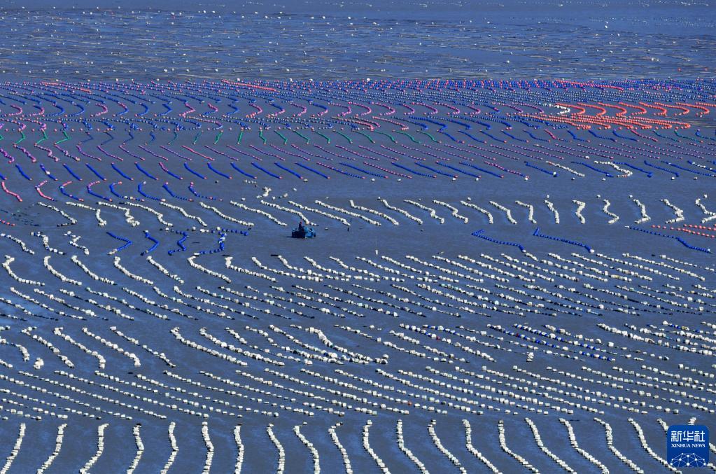 這是福州連江縣筱埕鎮官塢村海麵的“海上牧場”(2021年12月1日攝)。新華社記者 魏培全 攝
