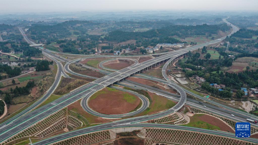 這是2020年12月30日拍攝的成資渝高速公路中和樞紐(無人機照片)。新華社記者 王曦 攝