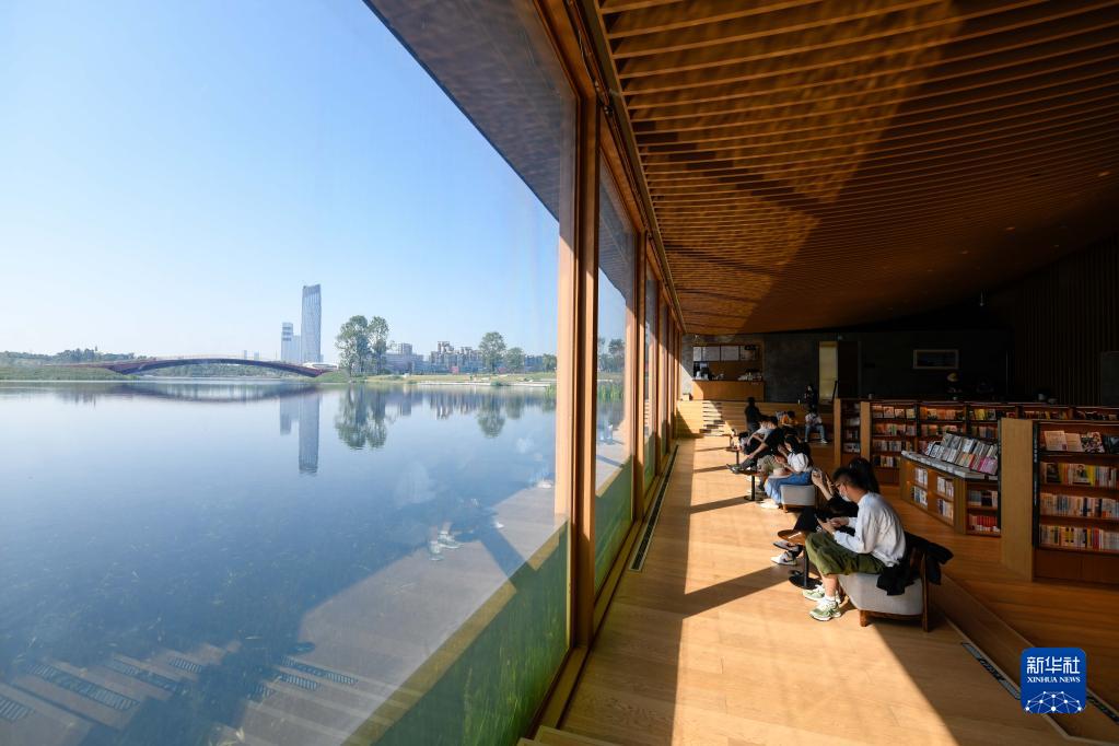讀者在成都興隆湖畔的中信書店內讀書(4月20日攝)。新華社記者 胥冰潔 攝