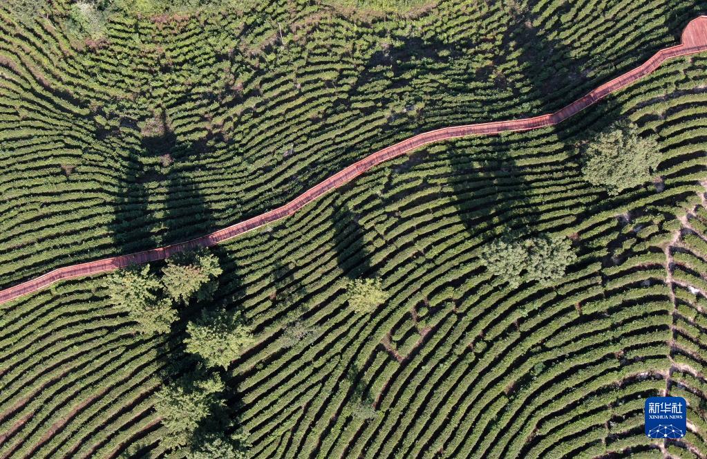 這是6月14日拍攝的陝西省平利縣老縣鎮蔣家坪茶園(無人機照片)。 新華社記者 李一博 攝