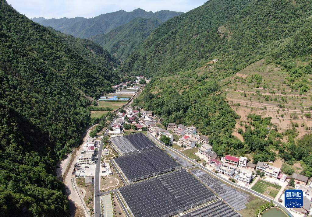 5月30日拍攝的陝西省商洛市柞水縣金米村的木耳大棚(無人機照片)。 新華社記者 李一博 攝