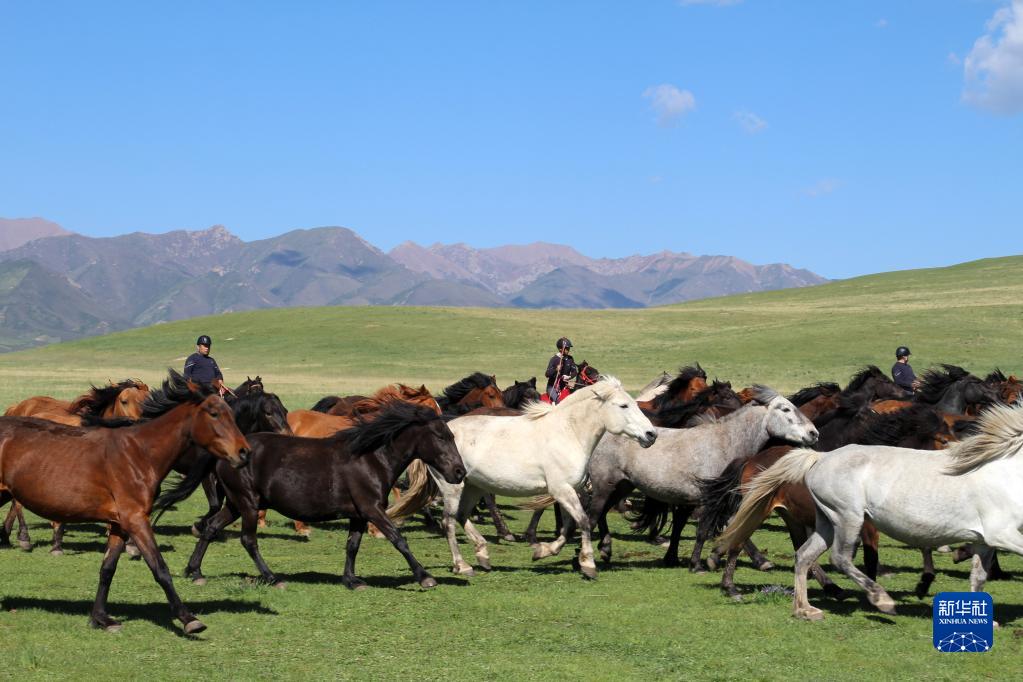 山丹馬場一場的牧馬人在放馬,如今的山丹馬場正努力打造國家優質馬種質資源保護及速力型賽馬培育基地(6月10日攝)。新華社記者 張智敏 攝