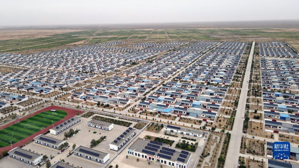 這是6月11日拍攝的甘肅省武威市古浪縣黃花灘富民新村村貌(無人機照片)。新華社記者 張智敏 攝