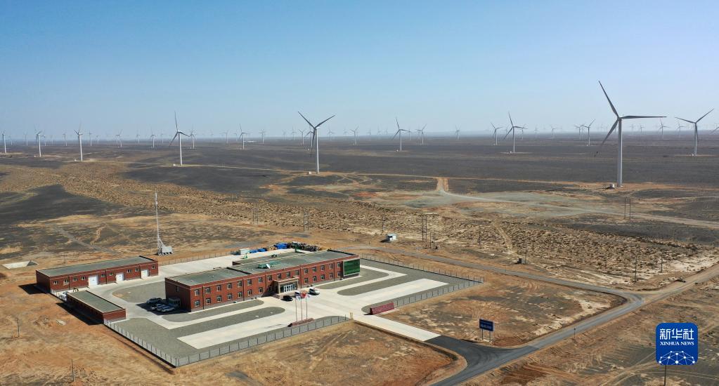 這是4月16日拍攝的甘肅省酒泉市境內的風電基地(無人機照片)。新華社記者 陳斌 攝