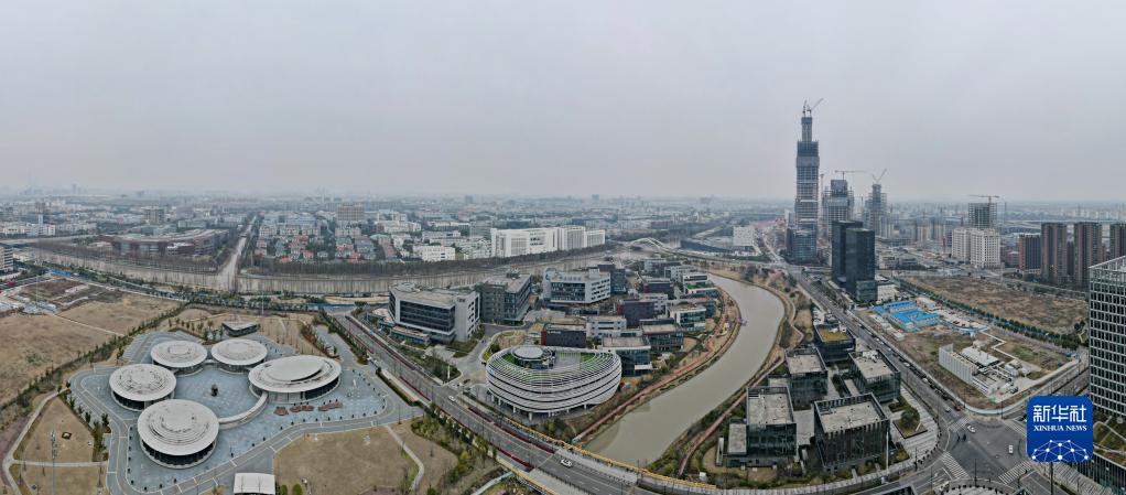 空中俯瞰位於上海市浦東新區的張江智能島(2月22日攝,無人機照片)。新華社記者 方喆 攝