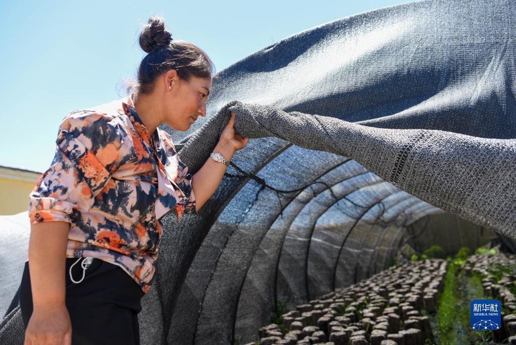 在新疆烏什縣依麻木鎮,在新疆維吾爾自治區黨委組織部、老幹部局駐托萬克麥蓋提村“訪民情惠民生聚民心”工作隊的幫助下,不少村民通過培植木耳增收致富(2022年6月7日攝)。新華社記者 丁磊 攝