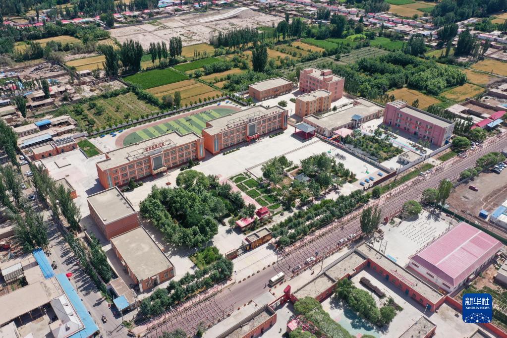這是新疆喀什地區疏附縣托克紮克鎮中心小學(2022年6月10日攝,無人機照片)。新華社記者 丁磊 攝