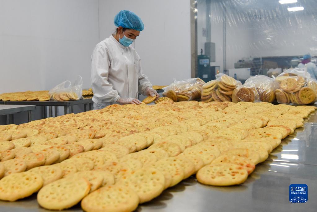 在新疆霍爾果斯饢產業園,工作人員在分揀剛做好的饢(2021年2月5日攝)。新華社記者 丁磊 攝