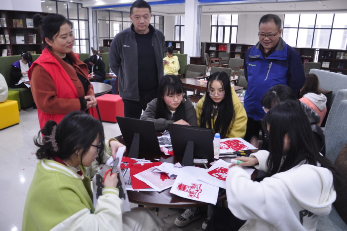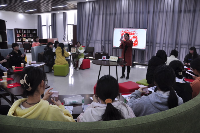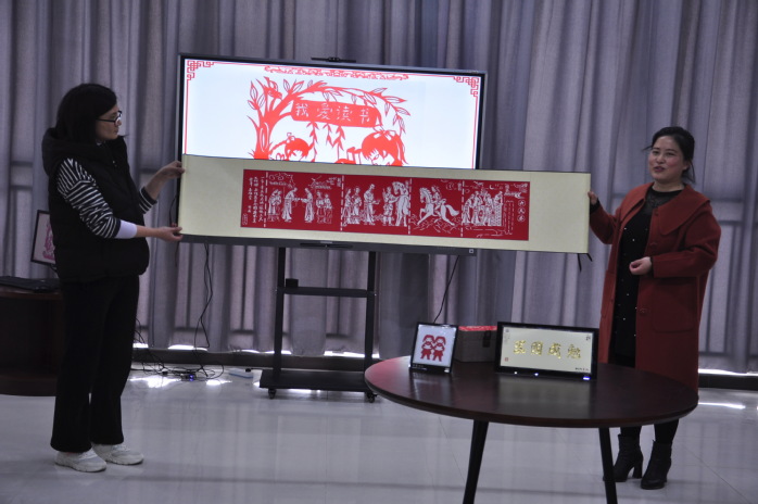 薛老師介紹了市級非物質文化遺產保護項目“桐城剪紙”的相關知識,展示並解讀了她創作的《六尺巷》等經典作品,帶領同學們現場進行了以讀書為主題的剪紙創作,讓同學們深度體驗了“桐城剪紙”藝術和非遺文化的魅力。