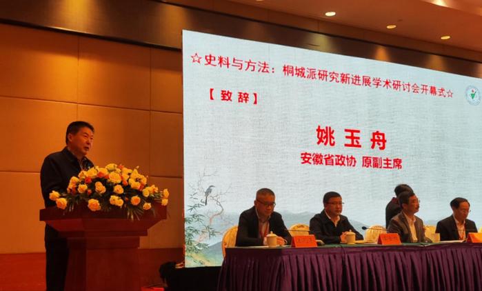 4月15日上午,安徽省政協原副主席姚玉舟,河南大學原校長和黨委書記、中國近代文學學會會長、安徽省桐城派研究會顧問關愛和,中國社會科學院文學研究所研究員、安徽省桐城派研究會顧問王達敏,出席研討會並在開幕式上致辭。