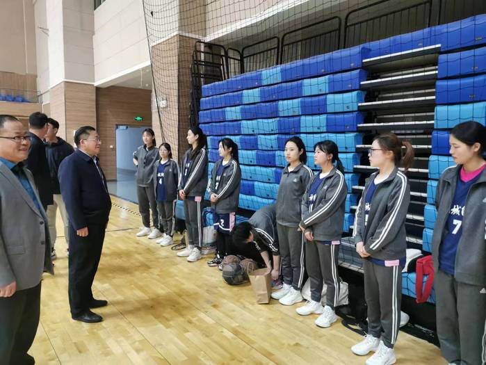 4月27日晚,校黨委書記王子龍前往滁州職業技術學院體育中心,看望慰問了參加第十五屆省運會高校部籃球比賽的運動員、教練員及工作人員,並為大家加油打氣。