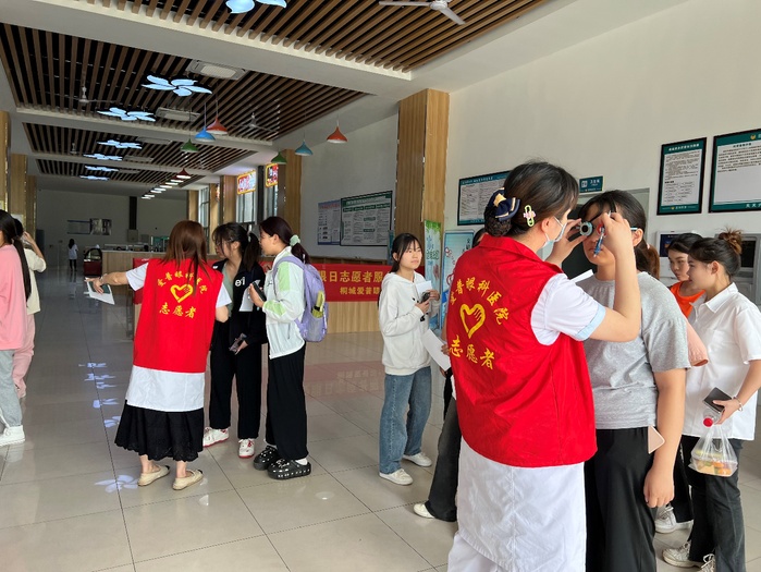 活動現場,桐城愛普眼科醫院醫療和眼視光團隊熱情地為聞訊而來的學生提供免費視力檢查、裂隙燈檢查、眼表疾病檢查、免費鏡架維修、眼鏡清潔等項目,還通過現場解疑釋惑等方式,普及近視、白內障、青光眼等眼病防治知識。“醫生,我眼睛近視,視力模糊,度數越來越高,怎麽辦?”“醫生,我眼睛幹澀癢痛,長期感覺眼前有小黑點,是什麽原因啊?”對於谘詢的每一個問題,在場的醫務人員都一一耐心做了解答,得到在場師生的一致好評。
