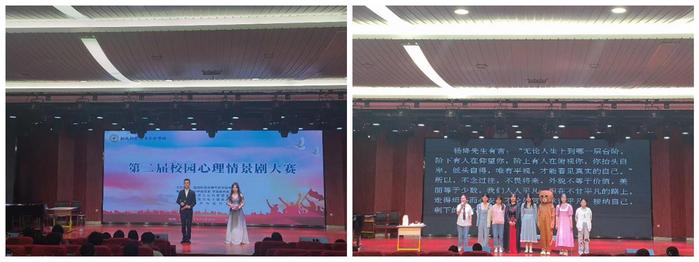 5月25日下午,學生處大學生心理發展與服務中心在音樂廳成功舉辦“第二屆校園心理情景劇大賽”,來自五個係的十三支隊伍各自演繹了屬於他們的精彩。比賽過程中,演員的精彩演繹,用歡樂和淚水詮釋了當代大學生心理成長的曆程。特色鮮明的心理情景劇,映射出當代大學生心理情感世界的新曆程,突出主題又不失趣味,起到了良好的心理健康教育的效果。說明:3