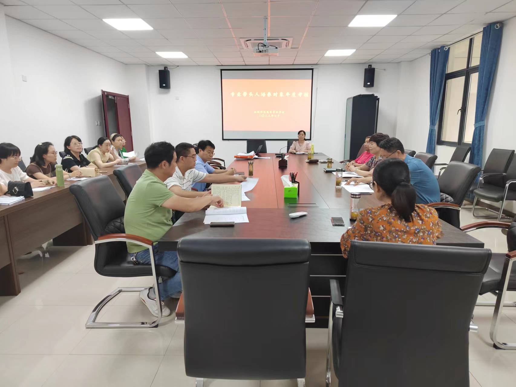 為進一步加強專業帶頭人培養對象隊伍建設,合理評價其任職以來的工作實績與質量,推進專業高質量、高水平發展,提升專業建設和人才培養質量,7月6日下午,學校開展了專業帶頭人培養對象任期考核工作。學校副校長程玉梅,黨委委員、組織人事處處長王宏偉,學校老年大學校長梁誌斌、教務處處長程愛蘭、各係主任及專業帶頭人培養對象參加會議。會議由教務處副處長汪秀主持。