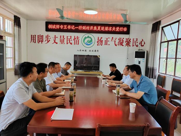 王子龍一行首先來到唐灣村村部關心慰問駐村幹部並送來慰問品,在座談會上聽取唐灣村兩委和駐村工作隊分別匯報了唐灣村鄉村振興工作上半年工作開展情況及下半年的工作安排匯報後,王子龍就當前中央和國家關於鄉村振興戰略政策進行了解讀,對唐灣村和駐村工作隊開展的相關工作和取得的成績予以肯定,並對村兩委和駐村工作隊後期工作提出要求:一是進一步學習國家關於鄉村振興政策,及時有效開展工作;二是進一步明確唐灣村接下來發展重點,找準發展方向;三是進一步整合各方資源,取得更好發展。學校將一如既往的支持、關心唐灣村的發展,紮實有效的開展鄉村振興支持工作。劉誌闊代表唐灣鎮對桐城師專近幾年來促進了唐灣村的發展和提供的幫助表示感謝。