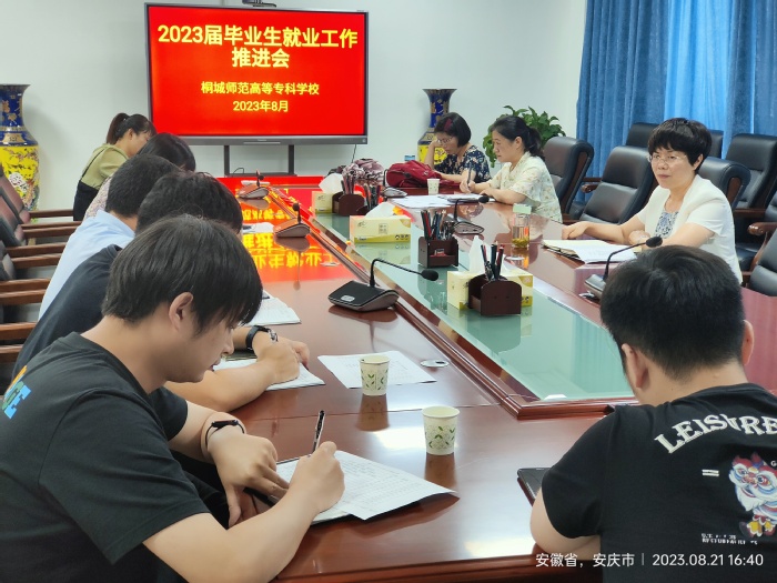 8月21日下午,學校召開2023屆畢業生就業工作推進會,副校長程玉梅出席會議並講話。招生就業處負責人、小學教育係和學前教育係負責人及畢業班輔導員參加會議。
