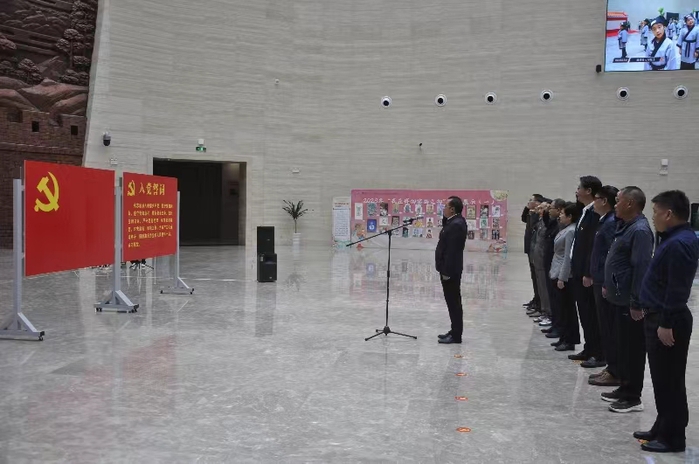 在博物館中央大廳,麵向鮮紅的中國共產黨黨旗,王子龍領誓,其他同誌高舉右拳,集體重溫入黨誓詞,鏗鏘有力的誓言回蕩大廳。通過此次實地學習教育,大家深刻感受到了喬年、延年兩位先烈們為革命勝利展現的視死如歸的慷慨氣概,大家紛紛表示要將學習的成果轉化為砥礪奮進的動力,始終銘記革命先烈的無私付出,錘煉優良政治品格,傳承紅色基因,賡續紅色血脈,不忘初心,勇擔時代使命。