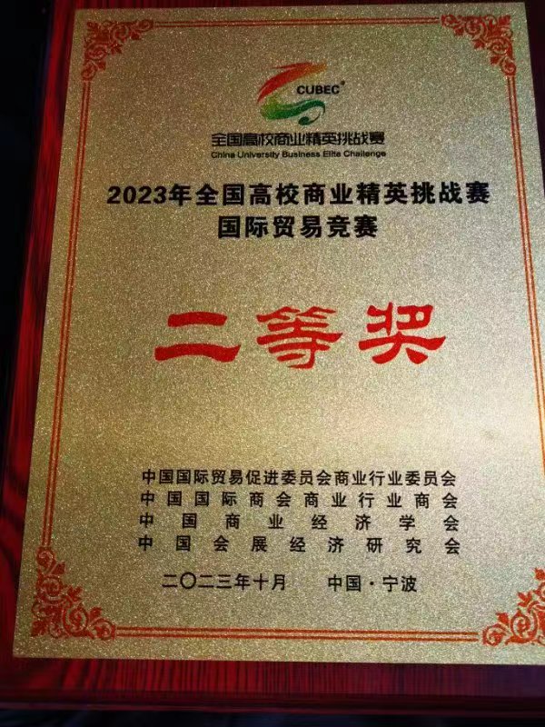 近日,2023年全國高校商業精英挑戰賽國際貿易競賽(國際貿易業務模擬賽道)全國總決賽在浙江寧波圓滿落下帷幕。共有來自全國26個省、自治區和直轄市的172所高等院校329支參賽隊伍2800名參賽選手和輔導教師入圍全國總決賽。我校商電係、旅管係、藝設係的16名同學組成兩組參賽隊,從329支參賽隊中脫穎而出,均榮獲全國二等獎,學校獲“最佳院校組織獎”。