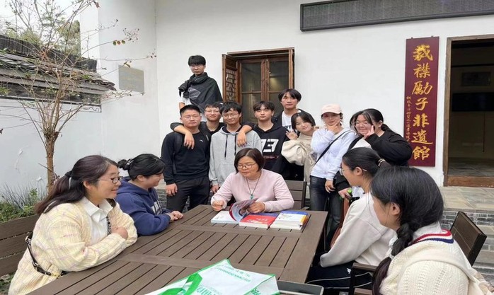 活動中,江覺遲老師首先向同學們介紹了“裁襟勵子”的故事,感受蘇蕙華教育孩子:“一要尊師重教,二要言而有信,三要成人之美,一襟而全三教”尊師重教的傳統。隨後,江覺遲老師帶領大家參觀裁襟勵子文化園:蘇蕙華故居,桐城母教長廊,裁襟勵子非遺館,誠信圖書角等等,讓大家零距離感受非遺文化,接受優秀傳統文化的熏陶。最後全體同學與江覺遲老師合影留念。