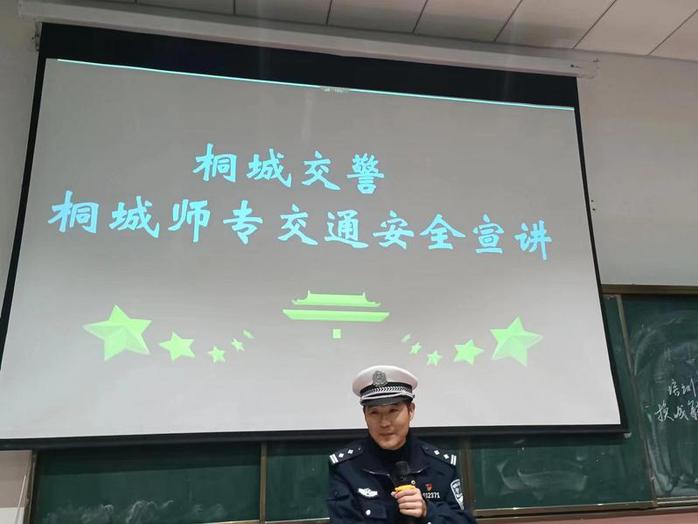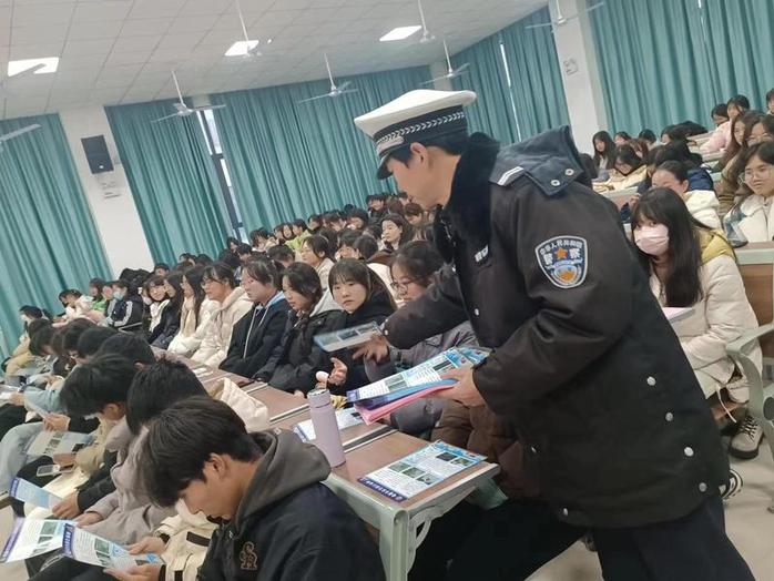 12月13日,桐城市公安交警大隊宣教室黃主任一行三人來我校開展了以“守法規、知禮讓”交通安全出行為主題的講座。學校學生會、旅管係各班委和各係2023級新生代表200餘人聆聽了本次專題宣講,講座由旅管係學管副主任葉茂主持。