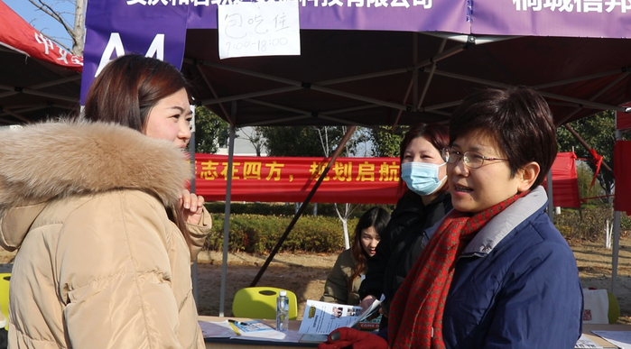 12月24日,桐城師專在新校區國旗廣場舉辦“職等你來,築夢未來”2024屆畢業生就業雙選會。校黨委副書記、紀委書記張敏麗,副校長程玉梅,黨委委員、副校長王宏偉等校領導到現場指導觀摩,並與用人單位親切交流,了解招聘就業情況。