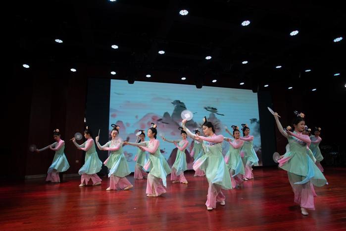 此次國風展演活動從節目的上報、篩選、打磨,再到節目的聯排、彩排和正式演出,曆時近一百天,參與演出的學生人數高達162人。除開場舞外,本次展演最終確定了涵蓋課堂情景、舞蹈朗誦、詩歌誦讀、古箏歌舞、相聲表演等各具特色的12個正式參演節目。