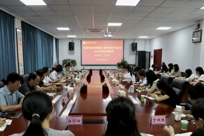 為深入學習貫徹習近平總書記關於黨紀學習教育的重要講話和指示精神,加強黨的紀律建設,提升黨員幹部的紀律意識和黨性修養,6月26日下午,桐城師專舉辦黨委書記講黨紀專題黨課活動,校黨委書記王子龍做了題為《加強黨的紀律建設抓好黨紀學習教育》專題黨課。會議由黨委委員、宣傳部長伍建強主持,校各黨總支書記及2024年新入職教師參加並聆聽黨課。