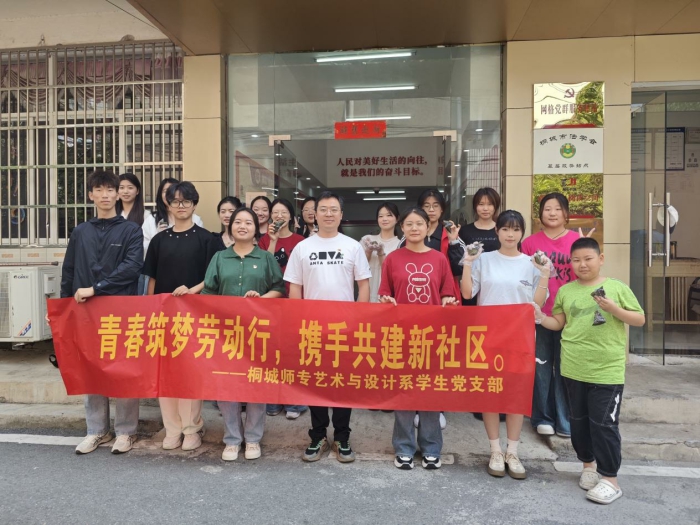 為強化青年學生勞動教育,引導學生樹立正確勞動觀念,推動青年與社區深度融合,5月25日上午,桐城師專藝術與設計係學生黨支部、團總支及學生誌願者們走進桐城市西苑社區,開展“青春築夢勞動行,攜手共建美好社區”主題活動。此次活動吸引了20餘名師生代表及30多名社區工作人員、居民代表共同參與,通過文藝匯演與手工勞動的雙重實踐,搭建起青年與社區互動的橋梁。