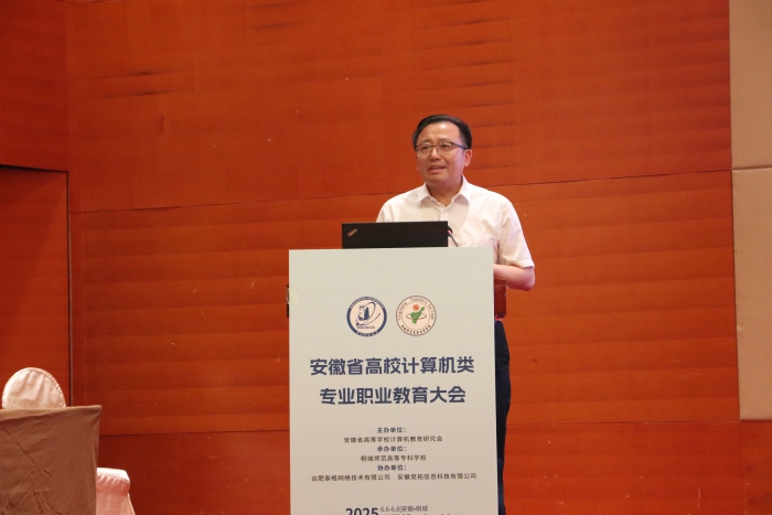 由安徽省高等學校計算機教育研究會主辦、桐城師範高等專科學校承辦,以“產教融合新生態,智啟職教新征程”為主題的安徽省高校計算機專業職業教育大會於6月7日在桐城成功召開。來自全國高校計算機方向的專家學者以及高新技術企業、新華網共150餘人參加。開幕式由桐城師專校黨委委員、副校長王宏偉主持。