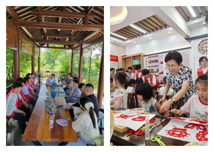張敏麗一行實地觀摩了團隊活動開展情況。實踐團隊圍繞“傳承、賦能、記錄”核心目標,精心組織了內容豐富的非遺實踐活動。在“非遺大講堂”上,團隊通過圖文展覽、實物展示結合傳承人現場演示,係統地向當地青少年講解剪紙與掐絲琺琅的曆史脈絡及工藝價值,並設置了非遺知識競答、紋樣拚圖遊戲等趣味環節,現場氣氛熱烈。說明:de08d61f8ba594ee585bc2ffdf1a249b