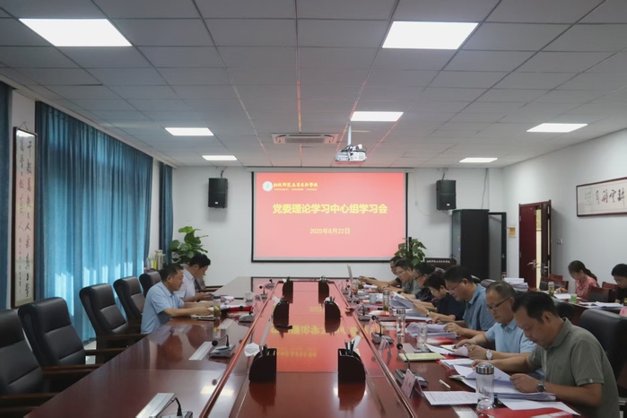 2025年8月22日,校黨委理論學習中心組召開2025年第十四次集中學習會,集體學習了《習近平法治思想學習綱要》,習近平總書記重要文章《堅定不移推進高水平對外開放》,習近平總書記關於當前經濟形勢和下半年經濟工作重要講話精神,學習了《中華人民共和國統計法實施條例》等內容。校黨委理論學習中心組全體成員參加會議,會議由黨委書記王子龍主持。