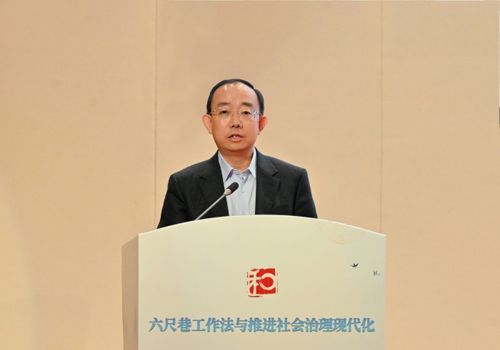 趙昌華在講話中指出,舉辦此次研討會是深入學習貫徹習近平法治思想、在法治軌道上推進中國式現代化的具體舉措。他強調,要堅定文化自信,深化理論研究,堅持實踐導向,充分認識“六尺巷工作法”的理論意義和實踐價值,為社會治理現代化提供有力學理支撐。孟景偉在致辭中表示,安慶市係統構建並全域推廣“六尺巷工作法”,不斷提升社會治理效能,希望以此次研討會為契機,進一步凝聚力量、匯聚智慧,為推進社會治理現代化貢獻更多“安慶智慧”。李福華、許靜靜也分別就強化黨建引領、汲取曆史智慧、夯實基層基礎及傳承禮讓文化等方麵作了致辭。