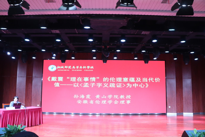 下午的議程包括兩場主題發言和桐城文化展示環節。上半場主題發言由安徽省倫理學學會副會長趙平教授主持。安徽工程大學陳金香教授以《和諧人際的“密鑰”——中華傳統讓德及其倫理之美》為題,闡釋了傳統讓德文化的當代價值;安徽師範大學趙冰教授聚焦地方文化符號,分享《“六尺巷”文化的道德智慧》,解讀其中蘊含的包容與謙讓精神;黃山學院孫海霞教授則以戴震《孟子字義疏證》為核心,探討了《戴震“理在事情”的倫理意蘊及當代價值》。