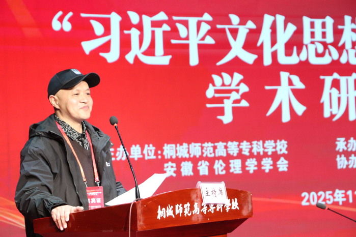 初冬時節,桐香四溢,學術氛圍濃厚。11月8日,“習近平文化思想的桐城實踐”學術研討會在桐城師範高等專科學校隆重舉行。本次會議由桐城師專與安徽省倫理學學會聯合主辦,馬克思主義學院承辦,桐城派研究中心與校社科聯協辦。來自上海財經大學、河南農業大學、安徽師範大學等省內外高校的專家學者、非遺傳承人及師生代表齊聚一堂,圍繞“AI時代倫理建構”“‘六尺巷’等優秀傳統文化的當代價值”“習近平文化思想的實踐路徑”等核心議題展開深入交流與研討。