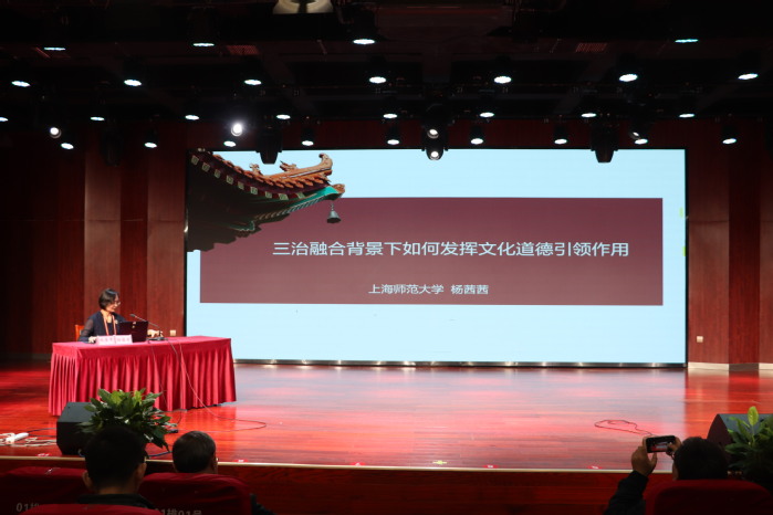 主旨報告環節由校紀委副書記、馬克思主義學院黨總支書記程小娟主持。上海財經大學夏明月教授以《AI時代勞動觀與休閑觀的碰撞與共生》為題,深入分析了人工智能發展對勞動與休閑方式的深刻影響,並提出實現二者和諧共生的倫理路徑;河南農業大學陳娛教授在《新時代豐富人民精神世界的邏輯理路》報告中,從理論與實踐層麵係統闡釋了精神文明建設的核心要義與實踐方法;上海師範大學楊茜茜副教授圍繞《三治融合背景下如何發揮文化道德引領作用》,探討了文化道德在基層治理中的引領功能,為倫理賦能社會治理提供了新思路。