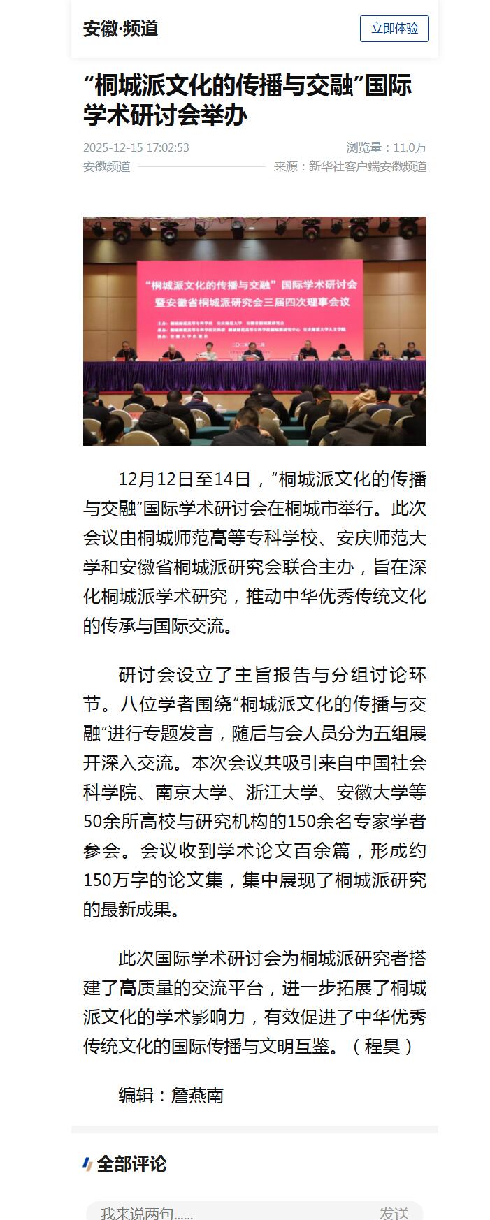 安徽頻道:“桐城派文化的傳播與交融”國際學術研討會舉辦