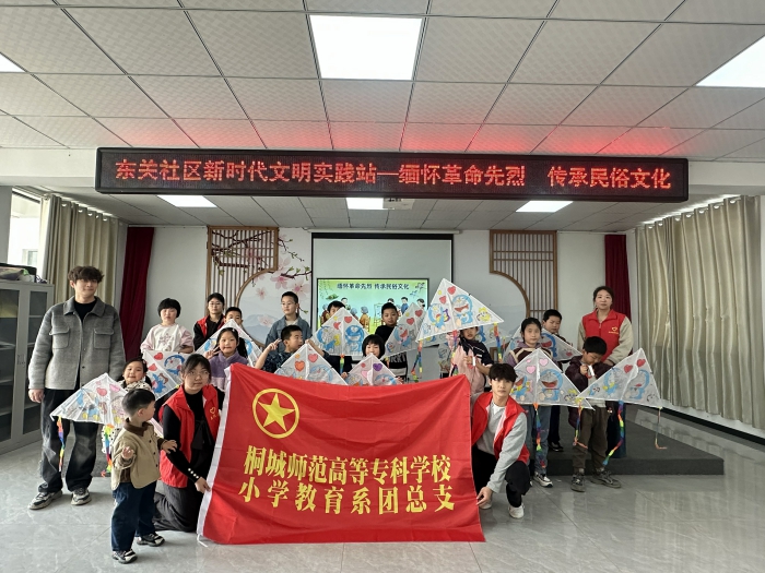 4月2日上午,在清明節來臨之際,東關社區暖陽生活館內春意融融,一場清明民俗親子體驗活動在此舉行。活動通過習俗講解、手工製作紙鳶等形式,讓社區親子家庭近距離感受傳統文化的魅力。小學教育係學生黨支部堅持黨建引領,深化“黨建帶團建、團建促服務”工作機製,帶領係部團總支的3名學生誌願者走進社區,以誌願服務為載體,在傳承清明傳統文化中踐行初心使命,繪就校社聯動、雙向奔赴的生動圖景。