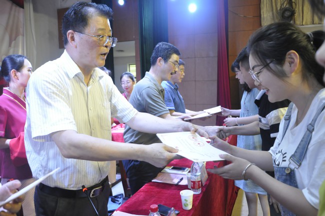 吳登明宣讀授予校級、省級優秀畢業生的決定,隨後校領導集體為優秀畢業生代表頒發榮譽證書及畢業證書。(辦公室 撰稿:龍澹寧 核稿:劉久芳)