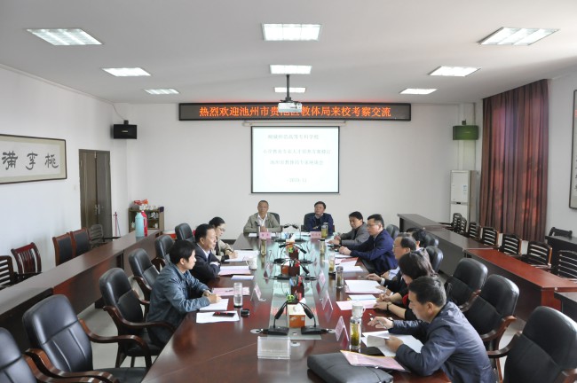 11月1日,池州市貴池區教體局副局長包明生率部分小學校長,來校考察交流小學教育專業實踐基地共建工作。校黨委委員、副校長吳登明接待了包明生一行,小學教育係相關負責同誌參與交流。